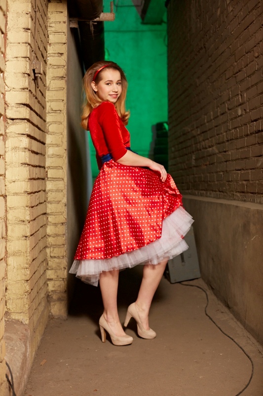 Очень понравилась тема конкурса этого года, которая дает возможность в полной мере проявить себя с творческой стороны, ведь есть множество замечательных мюзиклов с образами на любой вкус. Это очень вдохновляет! В числе моих любимых мюзиклов «Мamma Mia», «Забавная мордашка», «Звуки музыки», «Классный мюзикл», «Стиляги», и другие. Свой выбор я решила остановить на «Стилягах», так как мне нравятся яркие запоминающиеся образы и зажигательные танцы из этого мюзикла, и мне захотелось передать дух того времени в творческом туре. Этот этап стал для меня настоящей проверкой на прочность. Но теперь я могу с гордостью заявить, что преодолела свои страхи и смогла успешно выступить перед малознакомой аудиторией. Каждый раз, вспоминая свое выступление, возникает множество положительных эмоций. Пока это самое яркое впечатление о конкурсе. Но, думаю, что самое интересное еще впереди! Под прицелом фотокамер Первый образ для фотосессии тоже был «стиляжным», а на второй меня вдохновила великая актриса Одри Хепберн. Чтобы не повторяться, я решила изменить платье из второго тура на более яркий наряд, а для образа Одри у меня было несколько подходящих платьев. Профессиональные стилисты и визажисты помогли придать придуманным образам завершенность.
