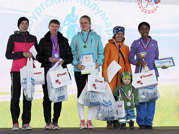Победители и призеры полумарафона, помимо кубков и медалей, получили замечательные призы от «Комуса» – брендированные дорожные наборы.