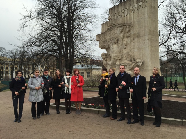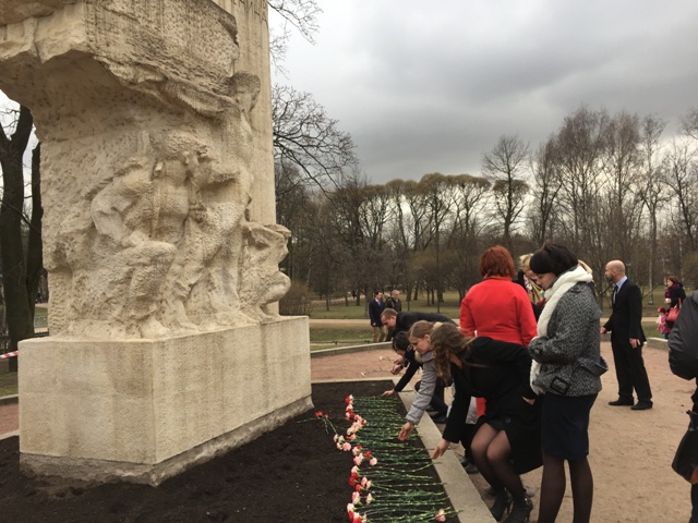 Коллеги из Санкт-Петербурга возложили цветы к мемориалу «Юным героям обороны города Ленинграда». Стела с горельефом в виде полуразрушенной стен в Таврическом саду посвящена детям, ставшим в годы блокады Ленинграда на защиту города наравне со взрослыми.