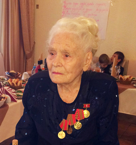 В этом году ей исполняется 100 лет. Моя прабабушка – замечательный человек. Ни разу за 20 лет она не повысила голос ни на меня, ни на кого-либо другого. Ни разу не просила помощи, со всеми проблемами справлялась сама. Воспитала во всех нас любовь к Отчизне, родным и труду. И, хотя за последние 3 года ее здоровье ухудшилось, она все такой же жизнерадостный, самостоятельный и любящий всех нас человек. Вот какие характеры закалены Великой Отечественной войной!