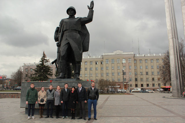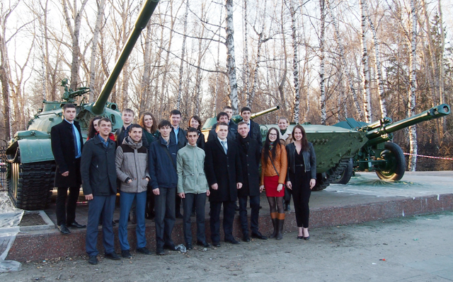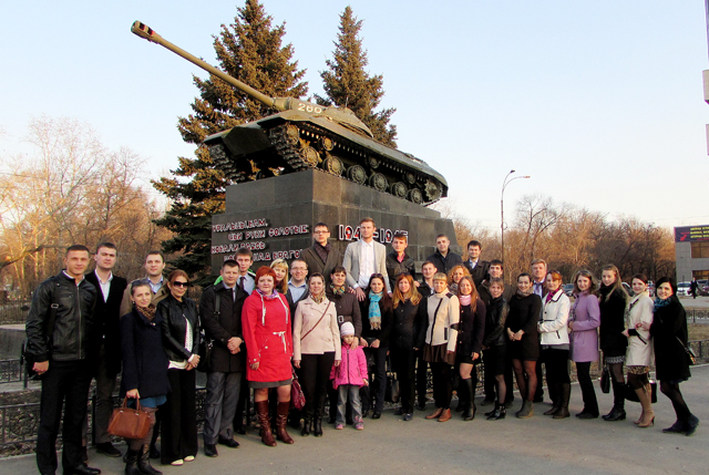 Над нашими коллегами возвышается памятник-танк «Победа», установленный на Комсомольской площади Челябинска, и посвященный героям тыла Великой Отечественной войны – работникам легендарного Танкограда.