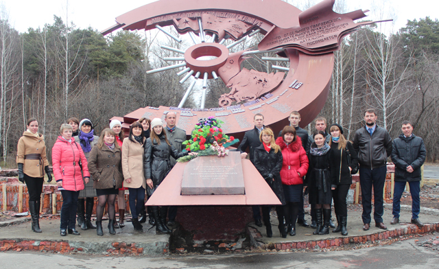 Коллектив РП сфотографировался у стелы комсомольцам, погибшим в годы Гражданской и Великой Отечественной войн, и легендарного бронепоезда «Козьма Минин», созданного рабочими Горьковской железной дороги, который по фронтовым рельсам доехал до Берлина.