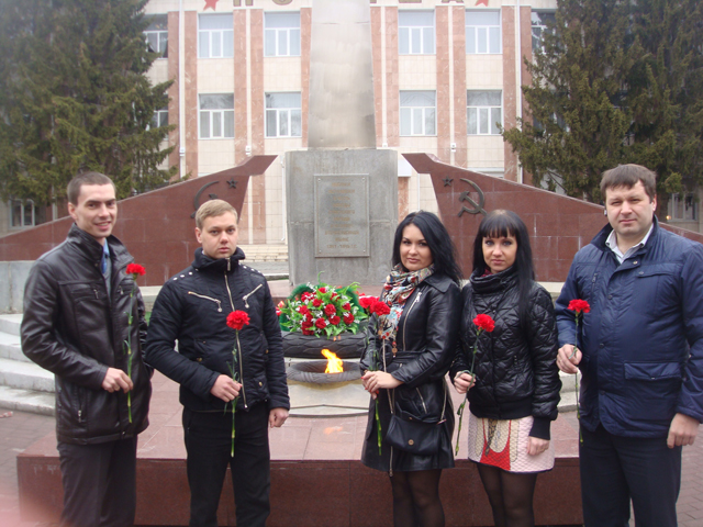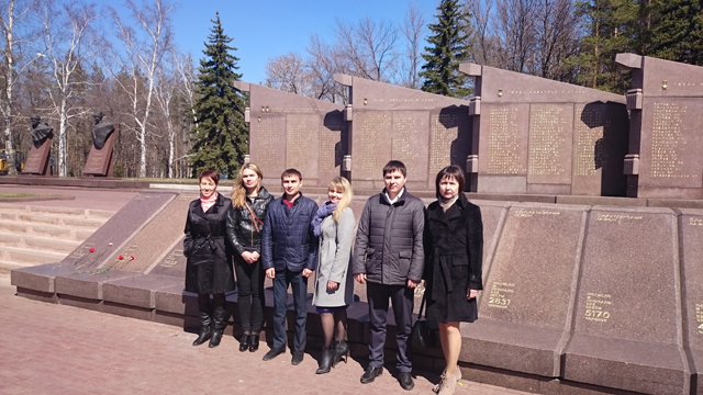 На этом фото у мемориала – сотрудники Контакт-Центра. Накануне Дня Победы они решили лично поздравить каждого родственника-ветерана (17 человек) цветами и небольшим подарком.