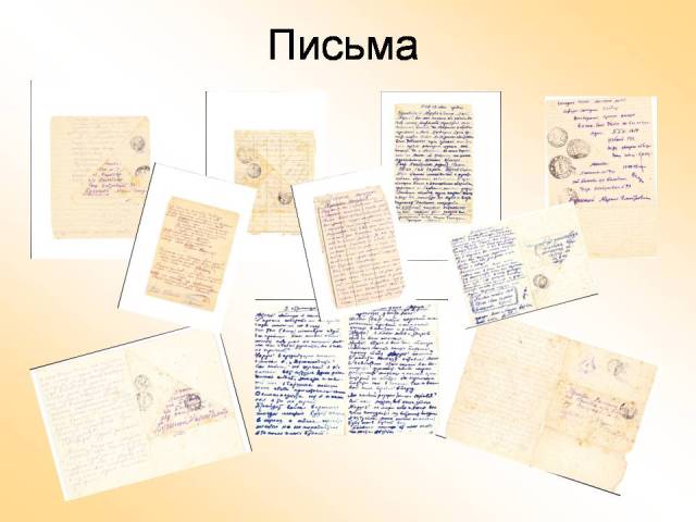 Мы храним семейные реликвии, связанные с событиями военных лет: ордена, медали и орденские книжки наших героических прадедов. Особенно нам дороги их фотокарточки и письма с фронта, полные любви к близким.