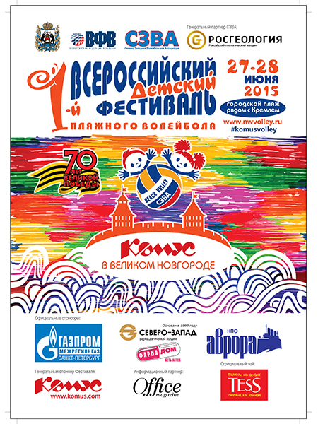 1-й Всероссийский детский фестиваль пляжного волейбола «Комус в Великом Новгороде» состоится на берегу реки Волхов на пляже, раскинувшемся прямо под стенами древнего Кремля этого старинного русского города. Мероприятие будет сочетать в себе соревнования по волейболу и обширную интерактивную программу развлечений для участников и зрителей.