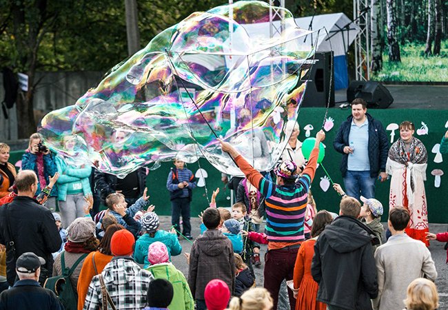 Маленьких и больших посетителей встречала Баба Яга, которая продемонстрировала свою лесную ферму и рассказала о ее обитателях. Веселые аттракционы, куклы-великаны, клоуны, шоу мыльных пузырей и театрализованное представление привлекли внимание детей. Со сцены гостей развлекали артисты; на