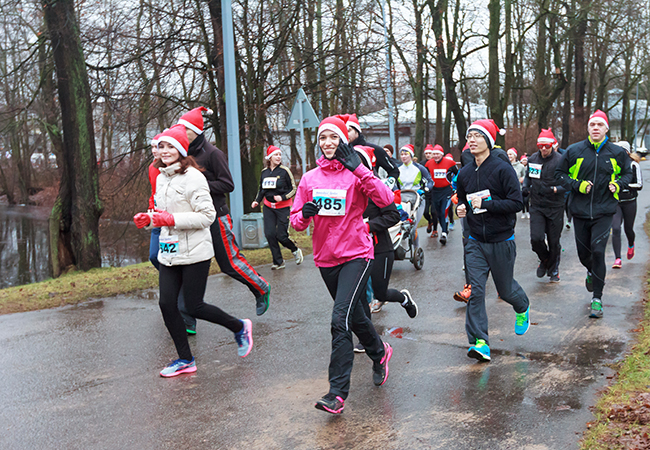 На юбилейный забег собралось более 200 участников, которым при регистрации выдавались порядковые номера и предлагались на выбор две дистанции –5 и 10 км. Каждый желающий мог получить фирменный новогодний красно-белый колпак от официального партнера забега – компании «Комус».