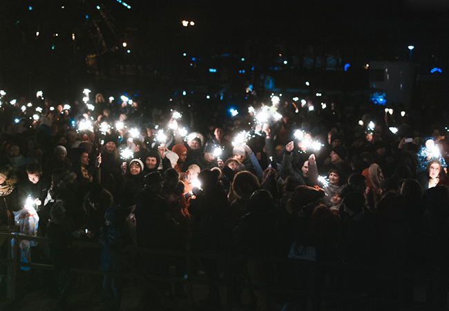 Петербуржцев и гостей города развлекали со сцены музыкальные коллективы. Также состоялось множество конкурсов и розыгрышей для зрителей. Финалом праздника стал грандиозный флешмоб с зажженными бенгальскими огнями, свет от которых был виден далеко за пределами парка.