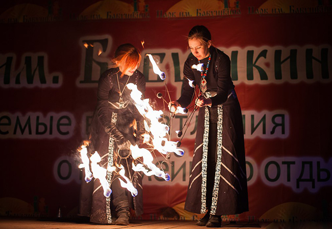 Центральному событию предшествовала зажигательная огненно-пиротехническая программа от известных коллективов Санкт-Петербурга. Свое мастерство продемонстрировали зрителям факиры, поглотители огня и мастера света. В сумерках шоу огня и света смотрелось завораживающе. Порадовались гости и еще одной масштабной световой акции: на центральной аллее парка была создана 10-метровая композиция из свечей, изображающая символ «Часа Земли» – «60+» (знаменует 60 минут без электричества).