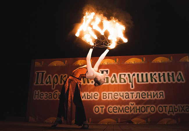 В этот вечер гостям фестиваля было чему удивляться: лучшие пиротехнические коллективы Санкт-Петербурга («Dragons», «Театр солнечного ветра», «Равен» и другие) показали огненное шоу. Вечерний парк озарился светом и наполнился атмосферой таинственности. Выступления факиров, «глотателей огня», как всегда, стали запоминающимся событием и вызвали восторженные возгласы зрителей. Артисты представили не менее интересную программу с современной музыкой, песнями и танцами. Актеры пантомимы импровизировали на сцене и вовлекали зрителей в свое яркое представление.