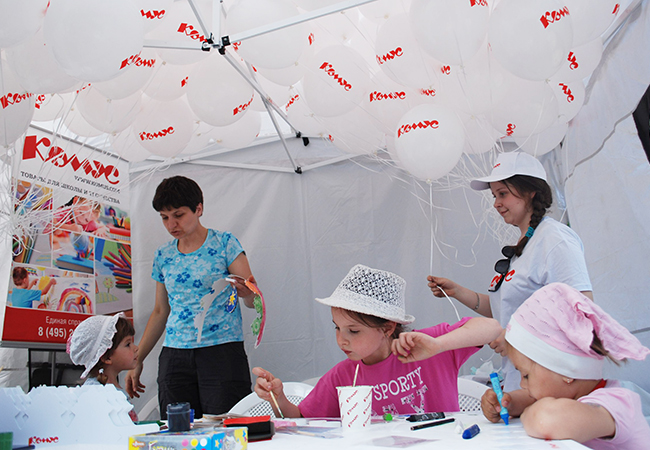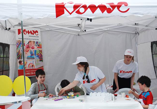 Наша Компания выступила партнером мероприятия. На празднике был открыт фирменный шатер «Комуса», где сотрудники Компании проводили мастер-класс по рисованию для детей. Ребята с удовольствием раскрашивали брендированные короны и создавали собственные рисунки. Также состоялся конкурс детского рисунка на асфальте. За творческую работу мальчики и девочки получали маленькие, но очень приятные подарки: воздушные шары и мыльные пузыри с логотипом «Комус». Традиционные фирменные сувениры могли получить и все желающие, посетившие шатер нашей Компании. Мы дарили хорошее настроение на Празднике мороженого в Сокольниках!