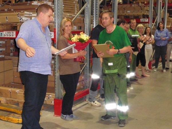 «Когда я выиграла в лотерею поздравление от «Комуса», думала, что руководитель просто подойдет ко мне в день рождения и скажет что-нибудь жизнеутверждающее. Но все оказалось гораздо торжественнее. Наше подразделение собрали на складе, меня и еще двоих сотрудников, у которых в июле был юбилей, пригласили выйти на середину. В присутствии всех коллег начальник Склада крупногабарита СУС УТСЛ ЛЦ