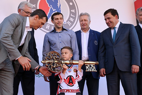 отметил, что новый спорткомплекс принадлежит «нашему будущему – детям». Затем он передал символический ключ от арены юному хоккеисту и пригласил всех на экскурсию по ледовому объекту.