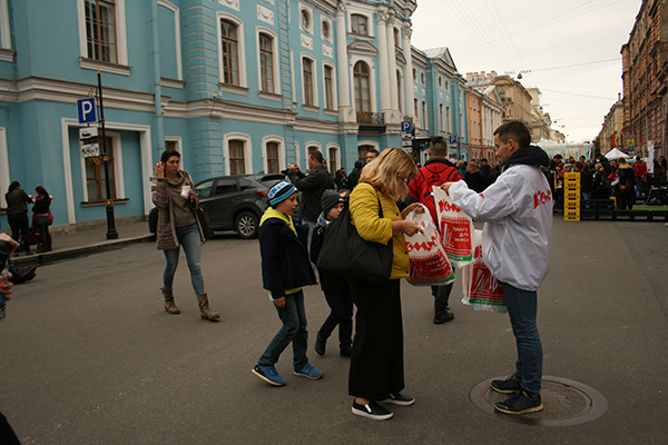 На один день центральные улицы Петербурга стали пешеходными и наполнились веселой жизнью. «Сердце» города стало сценой для театральных представлений, выступлений уличных музыкантов и выставок художников. Под открытым небом развернулись кинотеатр и атмосферная танцплощадка. Горожане приняли участие во всем многообразии активных развлечений для