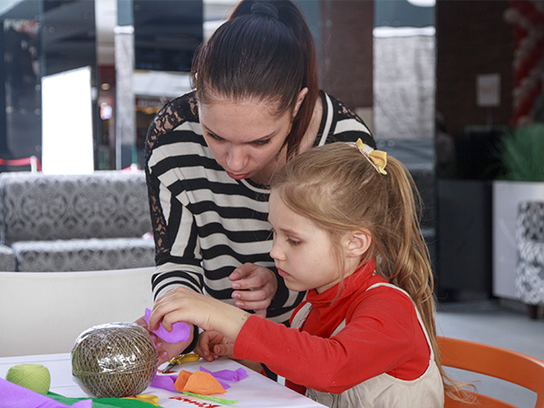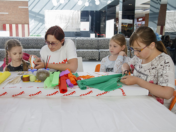 работе с гофрированной бумагой «Летний букет». Многим очень понравилось создавать поделки при помощи этого оригинального материала. Также была открыта детская зона с игровой площадкой и батутом. Юные посетители и их родители с удовольствием провели время на празднике и получили заряд отличного настроения! Надеемся, они станут нашими постоянными покупателями.