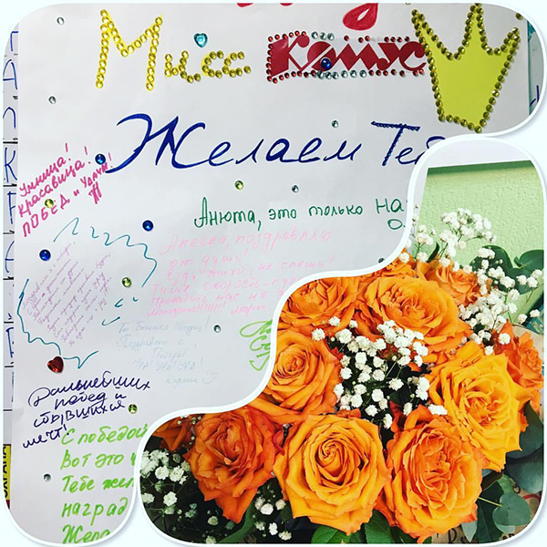 Когда вышла на работу после «Мисс Комус», коллеги встречали со словами: «Мы не сомневались в твоей победе». Незнакомые люди из разных регионов присылали поздравления по почте. А Группа продаж устроила мне сюрприз! Ребята нарисовали яркий плакат с пожеланиями и подарили цветы. Чувствовала их искреннюю радость за меня. Столько чудесных слов я не слышала никогда! Потом целый месяц коллеги, увидев меня в коридорах офиса, вместо приветствия говорили: «Поздравляем!»