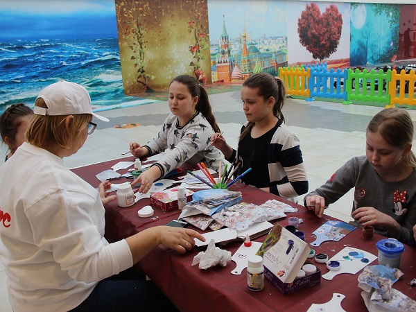 Творческие мастерские «Комус» уже не первый год радуют посетителей крупных торговых центров Москвы и Санкт-Петербурга. Разнообразие тем, техник и материалов побуждает детей и взрослых возвращаться на такие занятия снова и снова. 2 марта мы провели очередное занятие в ТЦ «Мари» (Москва), где расположен один из больших розничных магазинов «Комус». Тема урока – декупаж. Овладеть искусством декорирования поверхностей с использованием лака и специальных бумажных заготовок пожелали десятки заинтересованных ребят и их родителей.