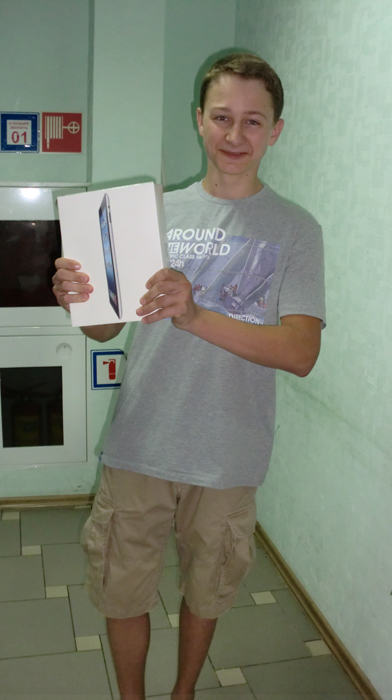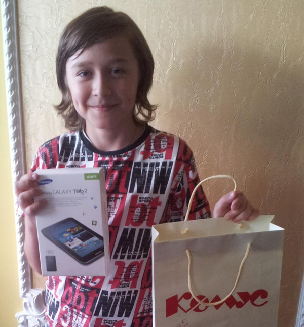 Одноклассники рассматривали мой дневник, расспрашивали о конкурсе и сказали, что я единственный, кто может в нем победить. Учителя, узнав о конкурсе, были очень удивлены. Они сказали, что этот конкурс очень необычный и интересный, и пожелали мне победы. Я даже не ожидал, что получу такой приз! Буду пользоваться им дома, покажу одноклассникам. Очень удобная и нужная вещь. В будущем я, наверное, хотел бы работать программистом». Приз – планшет Samsung Galaxy Tab
