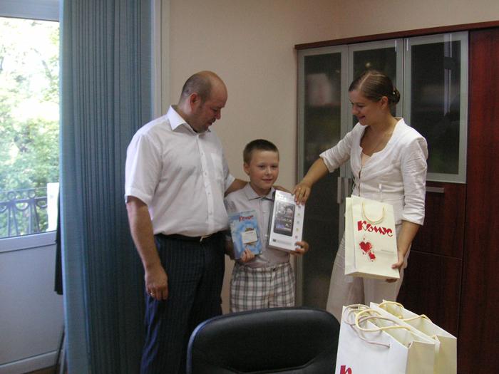 Приз - планшет Galaxy Tab Денису очень понравился! У такого подарка может быть широкое применение. Например, даже в лицее существует бесплатный Wi-Fi. Все школьники (в основном старшеклассники) пользуются электронными средствами в обучении – это не запрещено. Классному руководителю и директору лицея очень понравился подход Компании к социальным вопросам».