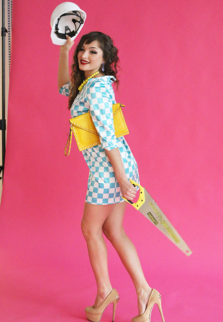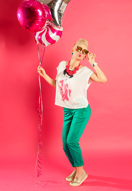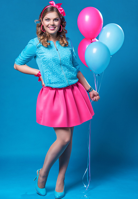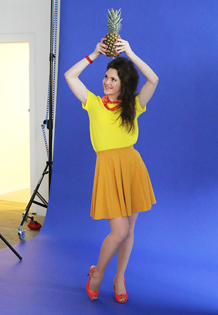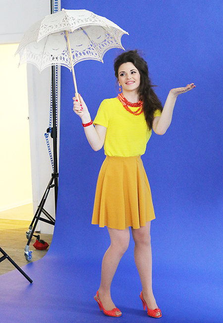 Идея для фотосессии напросилась сама собой: календарная весна наступила, но фактически ее не видно – на улицах еще совсем серо и тускло, а уже очень хочется ярких красок. Своими фото я пыталась создать весеннее настроение сотрудникам нашей большой Компании. Для этого выбрала красочный образ девушки-стиляги из 60-х годов.