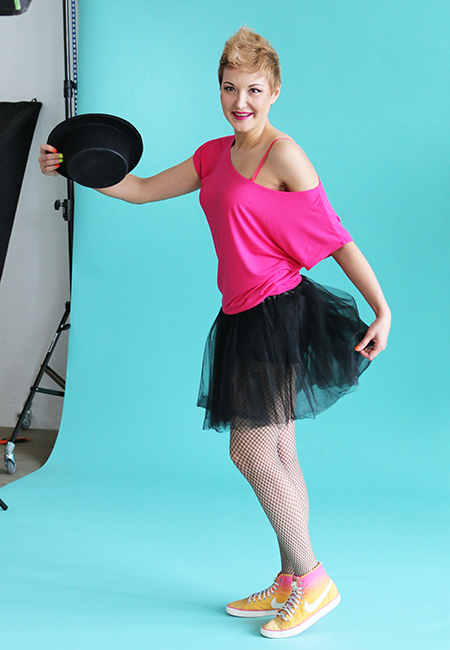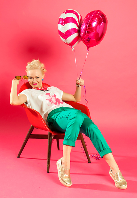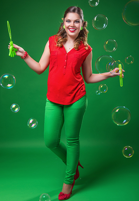 На фотосессии старалась создать яркий, озорной образ, но в тоже время оставаться женственной, красивой. Поэтому я не стала перевоплощаться, - осталась собой, но расставила броские акценты, тем более что на работе у меня много готового реквизита – красочных канцтоваров!