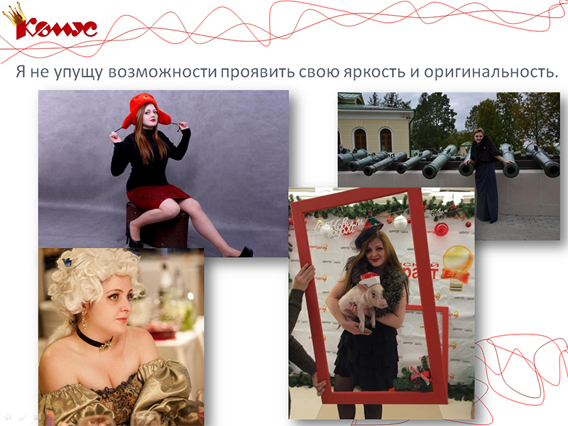 Для меня участие в «Мисс Комус» – как прыжок с большой высоты: и страшно, и дух захватывает, но вместе с тем это ощущение полета, восторга и переживание множества эмоций. Это небывалый вызов самой себе, шанс на перемены – и огромное удовольствие от каждого момента!